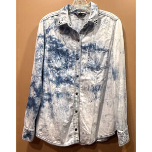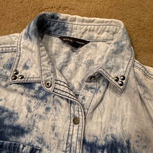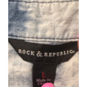 Rock And Republic Denim Snap Shirt Womens Acid Wash Studded L Large