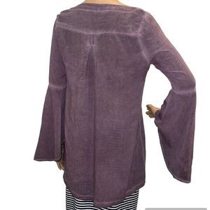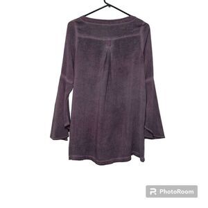 Rock & Republic boho lace up bell sleeve tunic. Size XS. V neck lace up style. Color is a washed out mauve/purple with a black hue to it. Top is lightweight and has a bit of an oversized flowy look.