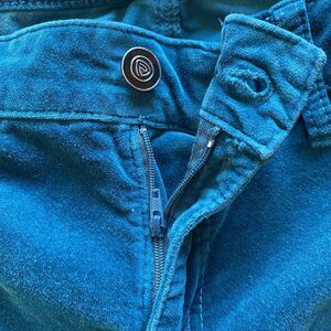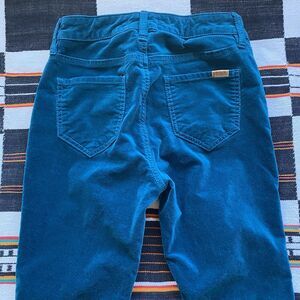 Pants are in excellent condition with no wear, spots, stains, snags, holes or fade. The color is a Blue Green sapphire turquoise color. 2 back pockets. Belt loops. Velvet feel to them. Amazing pants that can be styled so many different ways. Please check photos and measurements carefully for best description and let me know if you have any questions.