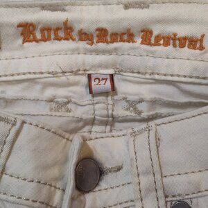 Brand new with tags Rock by Rock Revival capri off white jeans size 27. Measurements were taken with item laid flat & across. Waist:13.5", rise:7", inseam:19.5", length:27", leg opening:7". This item will be shipped by USPS Priority Mail with tracking & insured free of charge. Any questions, please contact me. Please view all photos as they are part of this item's description. Can be reserved for you per request. Thank you for stopping by.