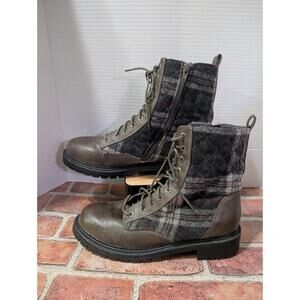 Rock & Candy Brown Plaid Zip Lace Up Round Toe Platform Combat Boots Women Sz 10