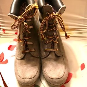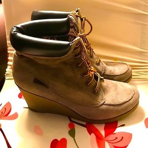 Rock & Candy Tan Suede Wedge Lace-Up Booties 9