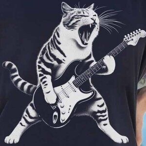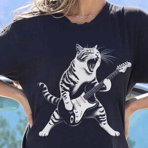 Rock Cat Playing Guitar Shirt, Funny Guitar Cat Tee for Cat Lovers