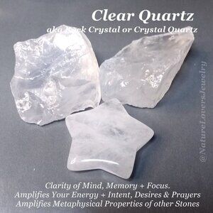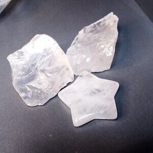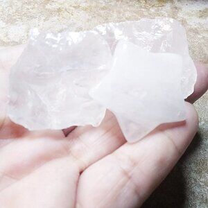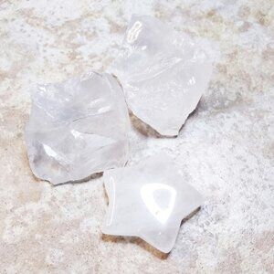 This bundle includes a large Quartz Star [app 30x30mm] plus 2 randomly selected chunks of Quartz. I choose larger pieces that are not suitable for turning into wire wrapped jewelry due to size and shape. See photos for samples.