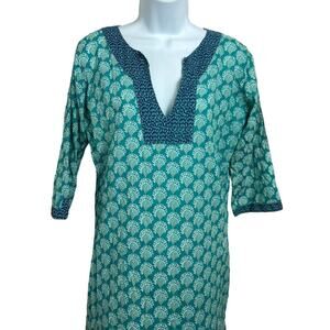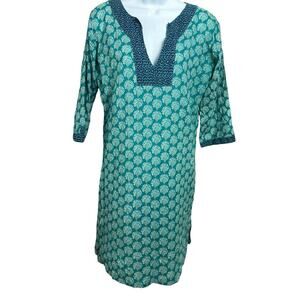 Rock Flower Paper Women's Teal Beach Dress Size S Swimsuit Cover Up 100% Cotton