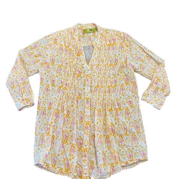Rock Flower Paper yellow patterned button down tunic with pleat details, Size L