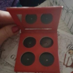 One of a kind. Swarovski crystals and brass embellishments. Has mirror, magnetic closure, and 4 magnetic wells to fit MAC eye shadow pans you may own or pans of MAC pigments hand pressed by me (sold separately). Cute statement piece for your vanity!