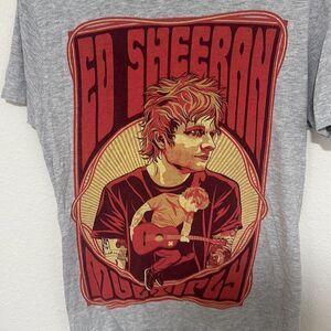 Transport yourself to the electrifying ambiance of a concert with the Rock Me Men's Heather Gray Ed Sheeran Graphic Tour T-shirt. This garment is more than fabric; it's a portal to the raw energy and soul-stirring melodies of one of music's brightest stars. As you slip it on, feel the essence of Ed Sheeran's charisma and passion infuse your being. With its tasteful design and soft texture, this shirt becomes not just attire, but a cherished memento of unforgettable musical experiences.