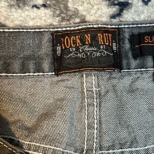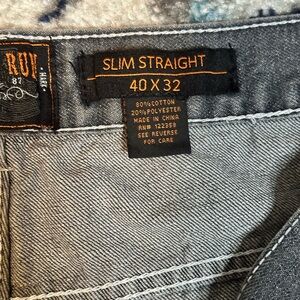 Rock N Run Slim Straight Mens Denim 40x32 Measures 37x27 Faded Black Embroidered
