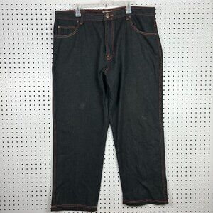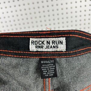 Rock N Run Stitched Y2K Jeans 42x32 Black Orange Gothic Streetwear Skate Baggy