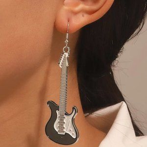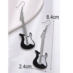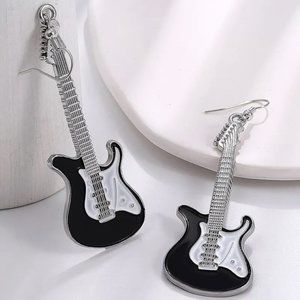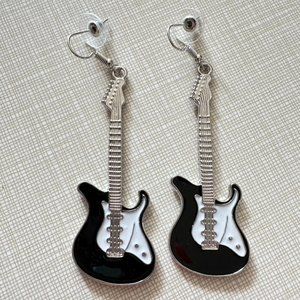 Rock On Little black and white enamel guitar earrings NEW