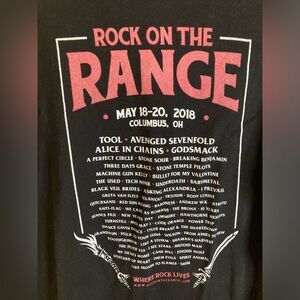 Rock On The Range 2018 t-shirt. Good condition with some small holes around the neckline as shown. Unisex size medium.