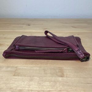 Rock Paper Scissors Burgundy Leather Small Wristlet