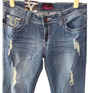 Rock Paper Sexy Womens 31 Blue Medium Wash Denim Distressed Bootcut Jeans NWT