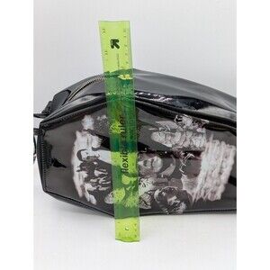 This coffin-shaped backpack from Rock Rebel features Frankenstein, Dracula, Wolf Man, Creature from the Black Lagoon, Mummy and Bride of Frankenstein in a collage on the front. Yes, we said coffin-shaped. Inside has spiderweb printed lining and Rock Rebel label. Zipper closure. Adjustable straps.