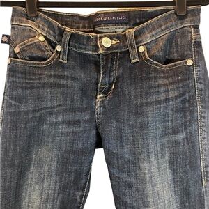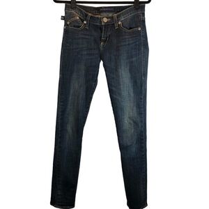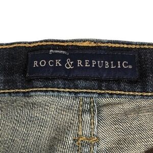 Rock & Republic Berlin Dark Blue Denim Embossed R&R Logo Skinny Jeans Size 4