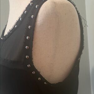 Chic black tank top with beaded accents. Ideal for evening wear.