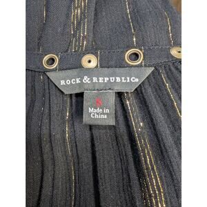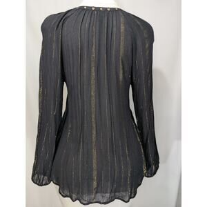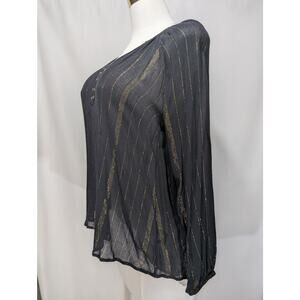 Rock & Republic Black Gold Metallic Stripe Semi-Sheer Blouse Size S