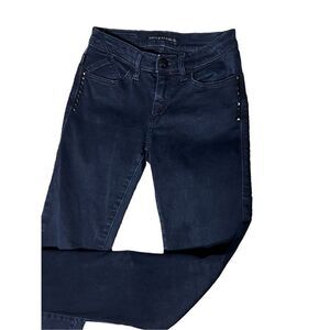 Made of 98% cotton and 2% spandex. Features a studded decor on the front and back pockets. Coloring is a very dark blue almost black. Laying flat measure 29" in the waist, 32" in the hips, 8" rise, and 31" inseam. Be sure to check out all of my other Rock & Republic items listed.