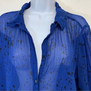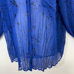 Rock Republic Blouse Woman XL Button Up Blue Animal Print Semi Sheer Roll Tab