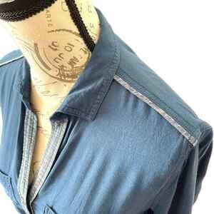 Rock & Republic Blue Roll Sleeve Button Front Shirt V-Neck Size XS