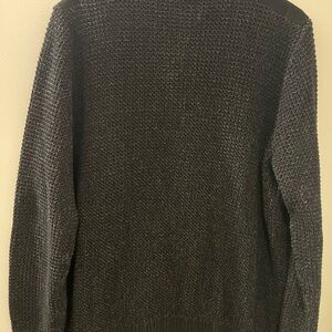 EUC. Stay warm and stylish with this classic black sweater. Perfect for any occasion. Black patchwork on shoulders.
