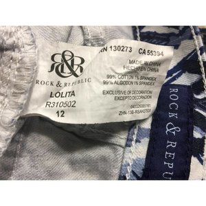 Rock & Republic Cut Off Jean Shorts Blue White Native Lolita Stretch 12