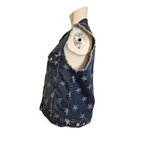 Rock & Republic Denim Vest Star Print Raw Edge Rocker Vest Medium Denim Sz L
