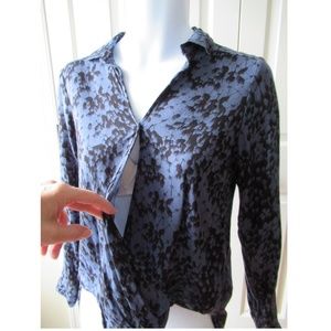 Color: Indigo Blue & Black animal print, w/ Silver cuff buttons (Drape Front has opening just under the chest - see photos 4 & 5)