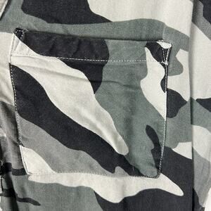 Gently Used Rock & Republic Dress. This is a women's small. Green and black camo pattern throughout. Button down with a collar. Very short sleeves, almost sleeveless. Front pocket. Super light and soft. Would be cute for a night out or a concert or something! 100% cotton. Chest is 17” and shoulder to hem is 36” (a little shorter in front).
