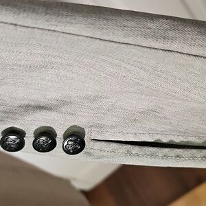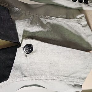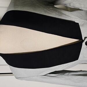 Chic blazer by Rock & Republic. Features a sleek black and gray design. Ideal for stylish events. lots of details. 99% cotton 1% spandex. size 8. pit to pit flat measurement is 19". The sleeves are 18 with a 5" slit with three decorative buttons. The top to bottom length is 21". Very good used condition and quality.