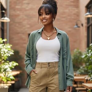 Chic olive button-up from Rock & Republic. Ideal for versatile styling.