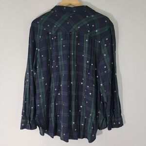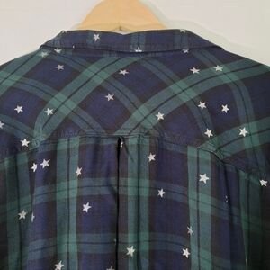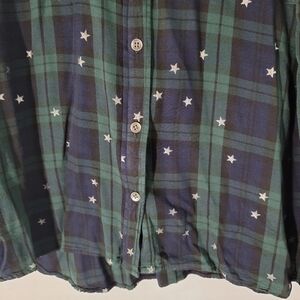 Rock & Republic Green Plaid Button Up Shirt XXL Long Sleeve Sparkle Star Print