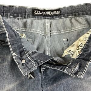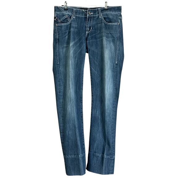 Rock & Republic Jeans Women Size 28 Blue Whiskered Stone Wash Y2K Bootcut Denim