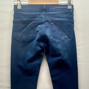 Rock & Republic Jeans Womens Size OM Skinny Fit Bling Back Pocket Dark Wash EUC