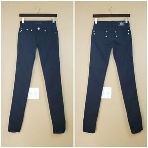 Rock & Republic Jessa low-rise skinny denim jeans, size 24. Stretchy. Dark wash. Pants zip and have a button fly closure.
