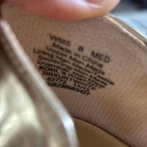 Step up your style game with these glamorous Rock & Republic high-heeled sandals! Featuring a sleek gold-tone finish, these shoes are a perfect blend of edgy and chic. The peep-toe design adds a flirty touch, while the metallic studded front creates a bold statement. The adjustable ankle strap ensures a comfortable fit, making them ideal for special events or nights out. With their shiny gold heels and luxurious design, these sandals are a must-have addition to your wardrobe, combining fashion-forward elements with timeless elegance.