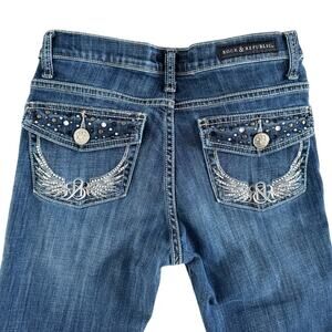 Rock & Republic Kasandra Jeans women sz 4 embellished Bootcut Moto Boho Edgy