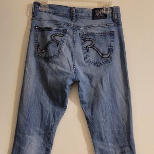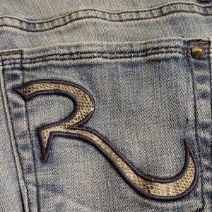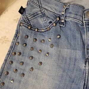 Well loved and maintained studded Rock & Republic jeans. Size 8 medium length. Amazing pair of jeans, great quality, they don't fit me anymore, but they still look awesome. Pairs well with a leather jacket!