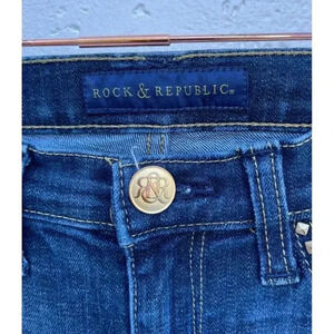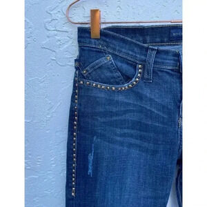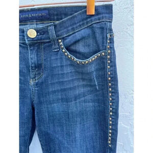 Rock & Republic Kasandra Womens Gold Studded Bootcut Denim Jeans Blue Sz 6M