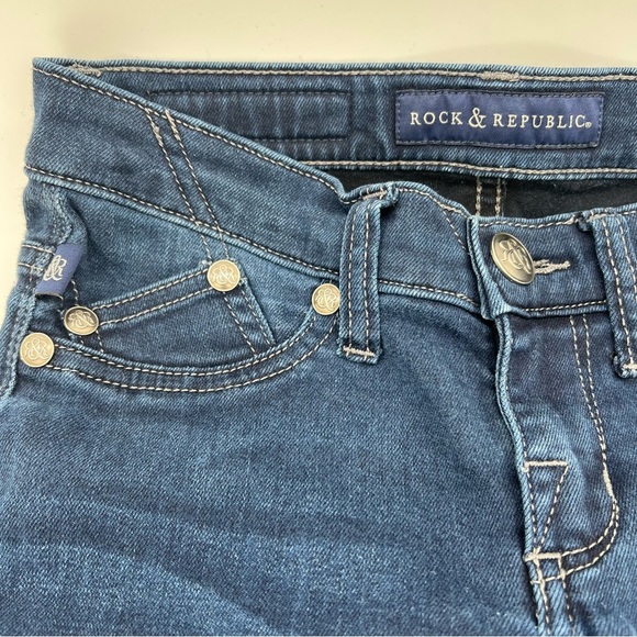 Elevate your denim collection with these Rock & Republic Kashmiere skinny jeans in a sleek dark wash. Designed with premium quality and signature R&R details, these jeans are perfect for any occasion, from casual to dressed up.