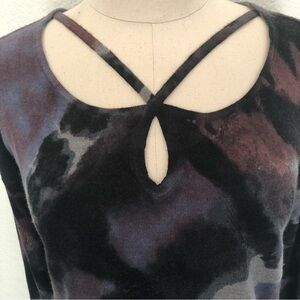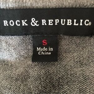 Warm and fuzzy multicolored Rock & Republic keyhole, long dropped sleeved pullover. Size Small. Sexy neckline. Great for Fall. In excellent condition. 24” in length.