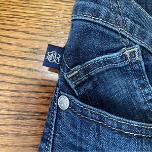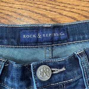 These are Rock & Republic ladies blue jeans, Kasandra style. They are a size 6, have slight flare at the bottom. These pants have the signature R on the back pockets and show no wear. They are in excellent condition.