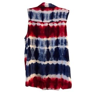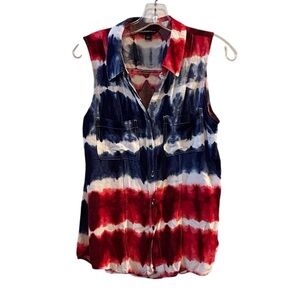 Rock & Republic Ladies Red, White and Blue Tie-Dye Sleeveless Button Up, M