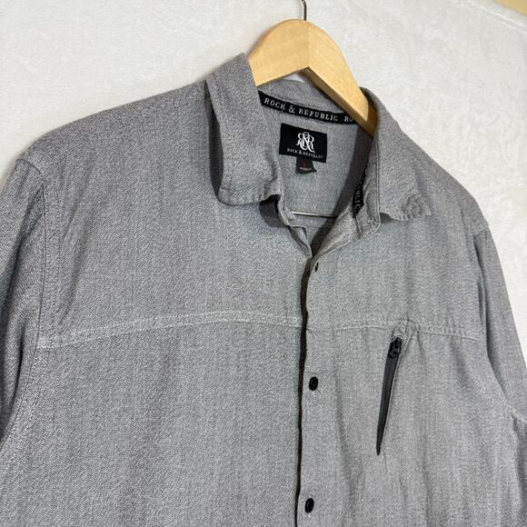 Rock & Republic Large Buttoned Heather Gray Dress Shirt Pocket Streetwear Sleek