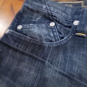 The jeans have an embroidered logo with a button fly, adding an accent to the design. It is available in size 38 and has a waist size of 38 inches. The inseam is 33 inches, making it perfect for any season. The Rock & Republic Henlee jeans are a great addition to your wardrobe, providing a relaxed fit and a stylish look.