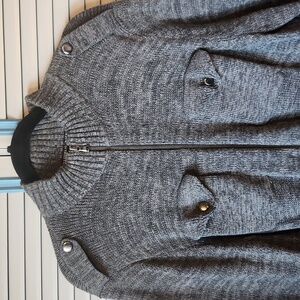 Rock & Republic sweater, men's knit sweater, gray zip-up sweater, military-style sweater, men's XL sweater, casual men's sweater, stylish winter sweater, heather gray knitwear, fall sweater for men, warm and durable knit sweater, zip-up pullover for men.