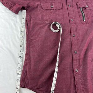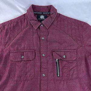 Rock & Republic Men's Small Button Shirt Short Sleeve Maroon Front Pocket Zip
