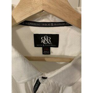 Rock & Republic Men's Casual Button Front Dress Shirt Size XXL White. Condition is Pre-owned. Shipped with USPS mail.