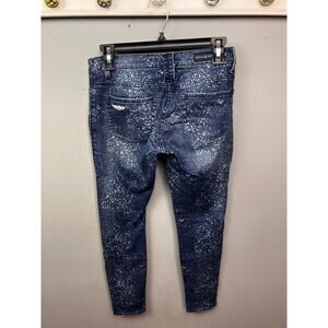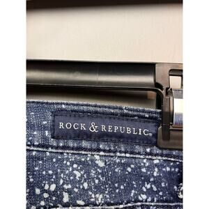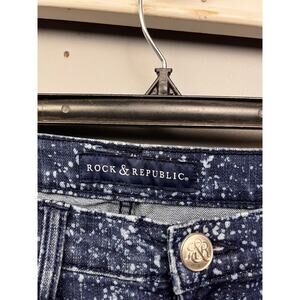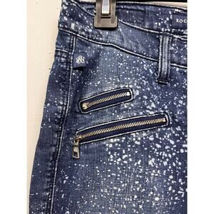 Rock Republic Moto Jeans Womens 0 Skinny Crop Banshee Blue White Splatter Denim